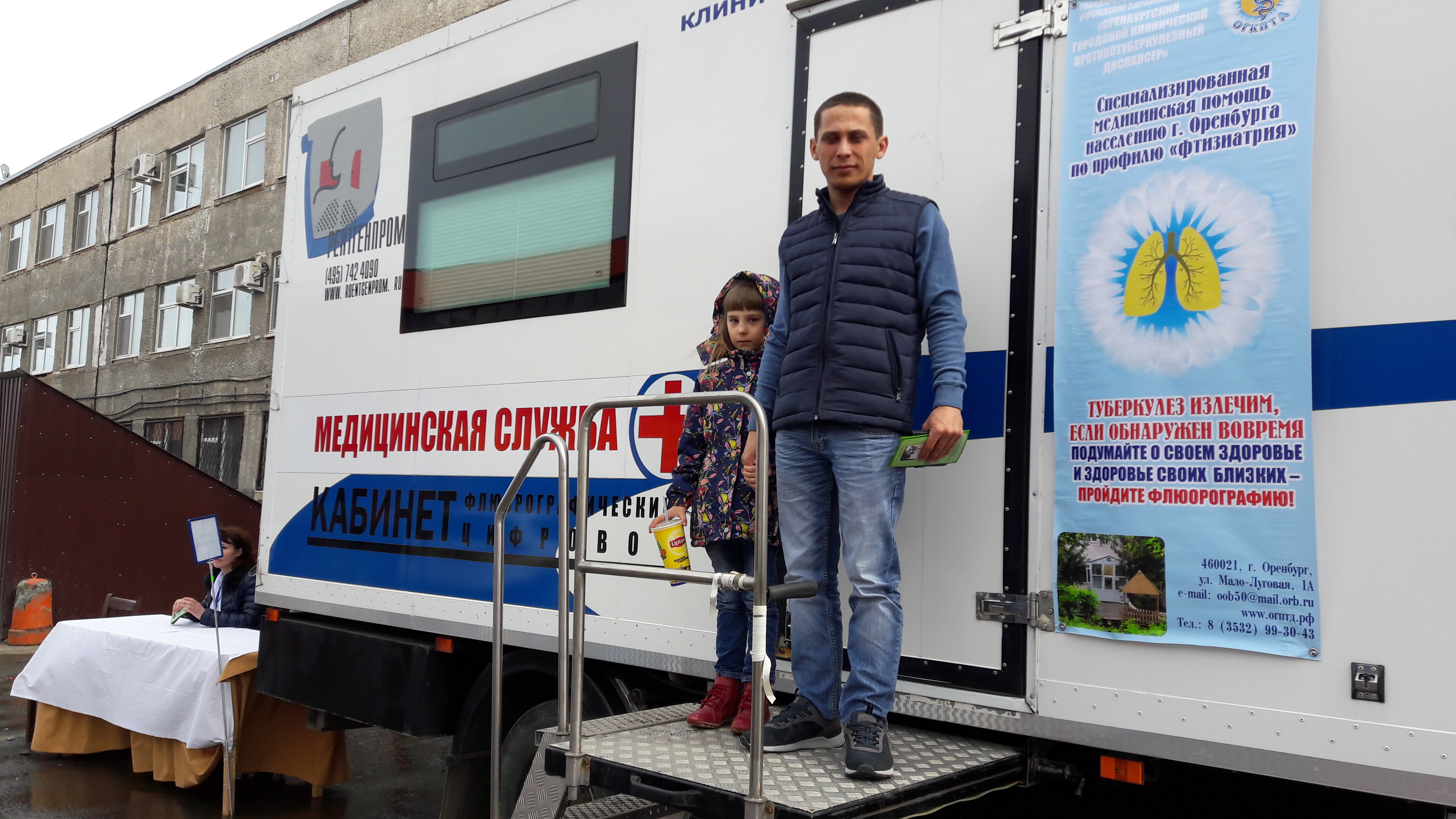 На фото: Виктор Садов из Оренбурга с удовольствием воспользовался услугой передвижного флюорографа. Процедура бесплатная. Нет очереди. Результат сразу выдается на руки.