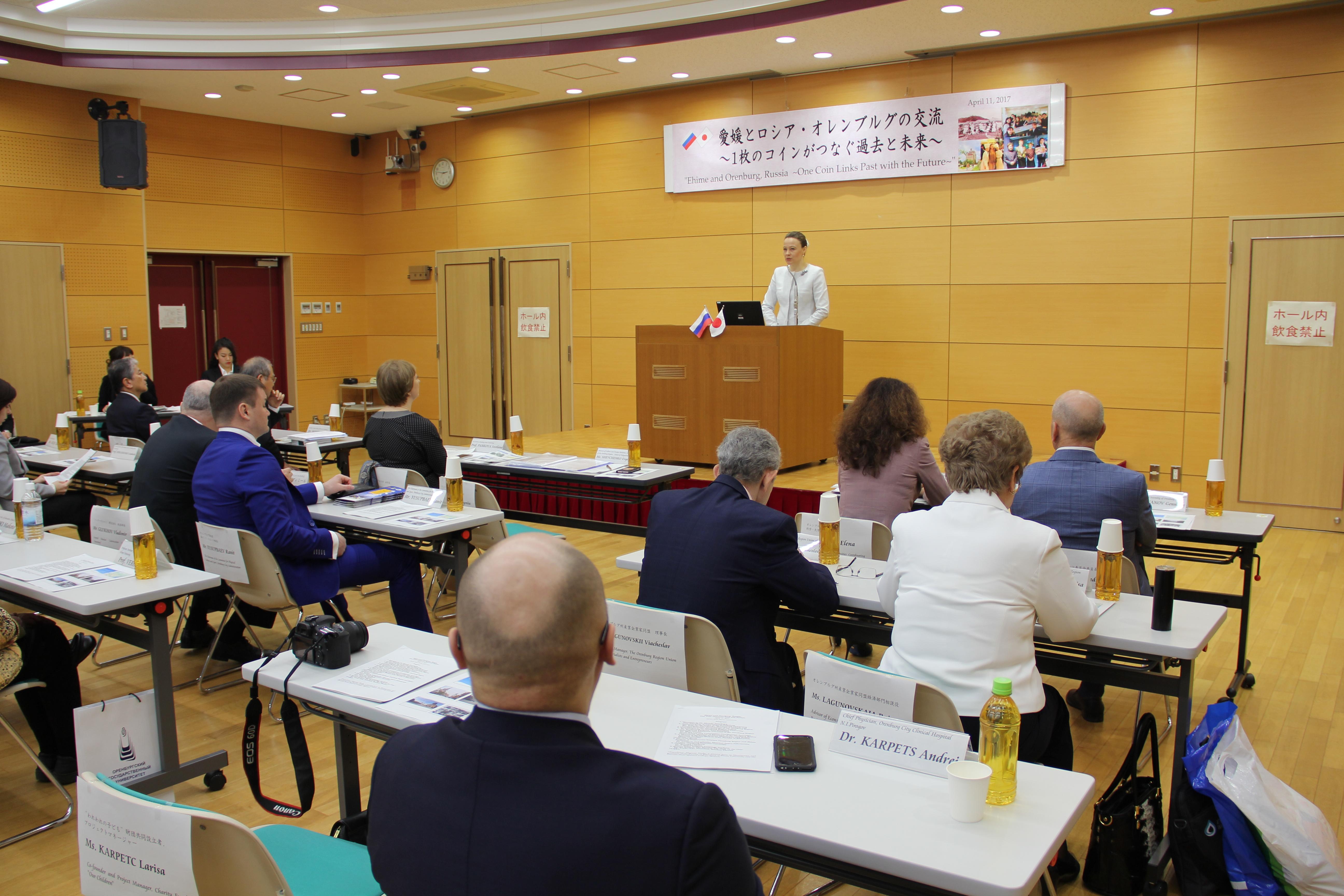 Проректор по учебной работе Оренбургского государственного университета Светлана Панкова презентовала свой вуз, а директор Японского информационного центра Оренбургского государственного университета Людмила Докашенко рассказала об истории сотрудничества между префектурой Эхимэ и нашим регионом.