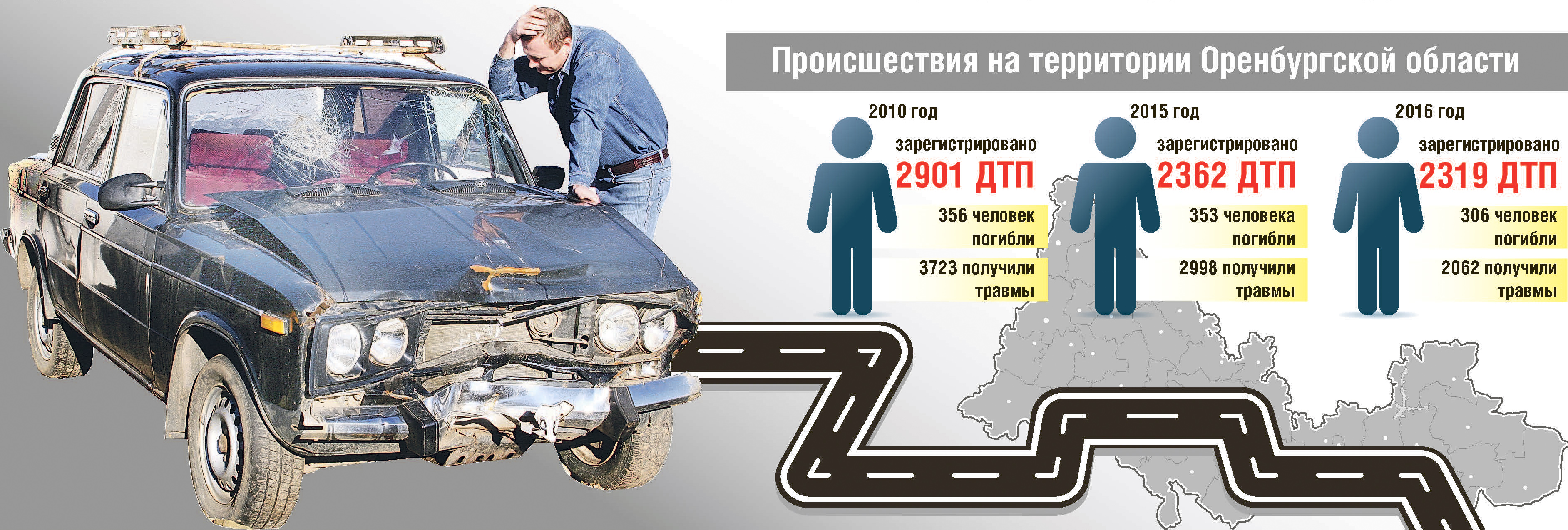 В 2010 году в Оренбуржье произошло 2901 ДТП, погибло 356 человек. В 2016-м на 600 происшествий меньше, но летальных исходов меньше только на 50.