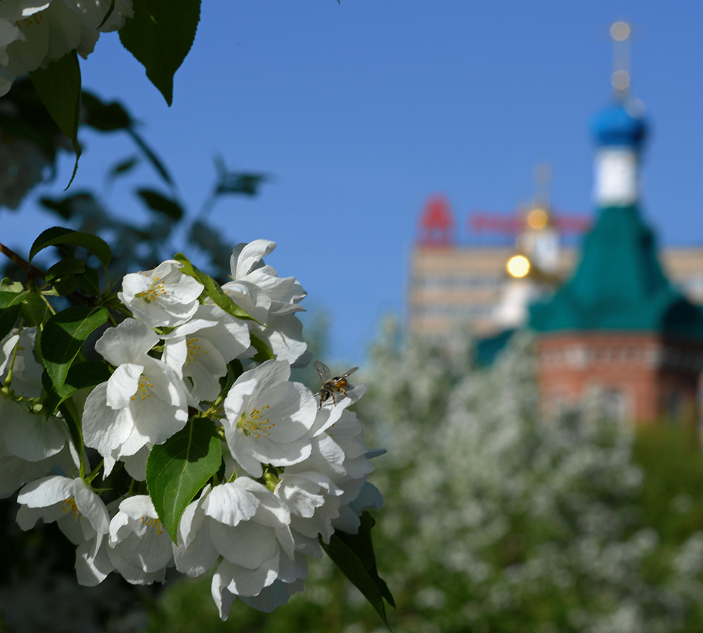 Белые цветы на синем небе. Кажется, будет дождь. По-настоящему тёплый, весенний. Умоет лицо, немного очистит. Нарисует картинку мира, в котором очень хочется жить.