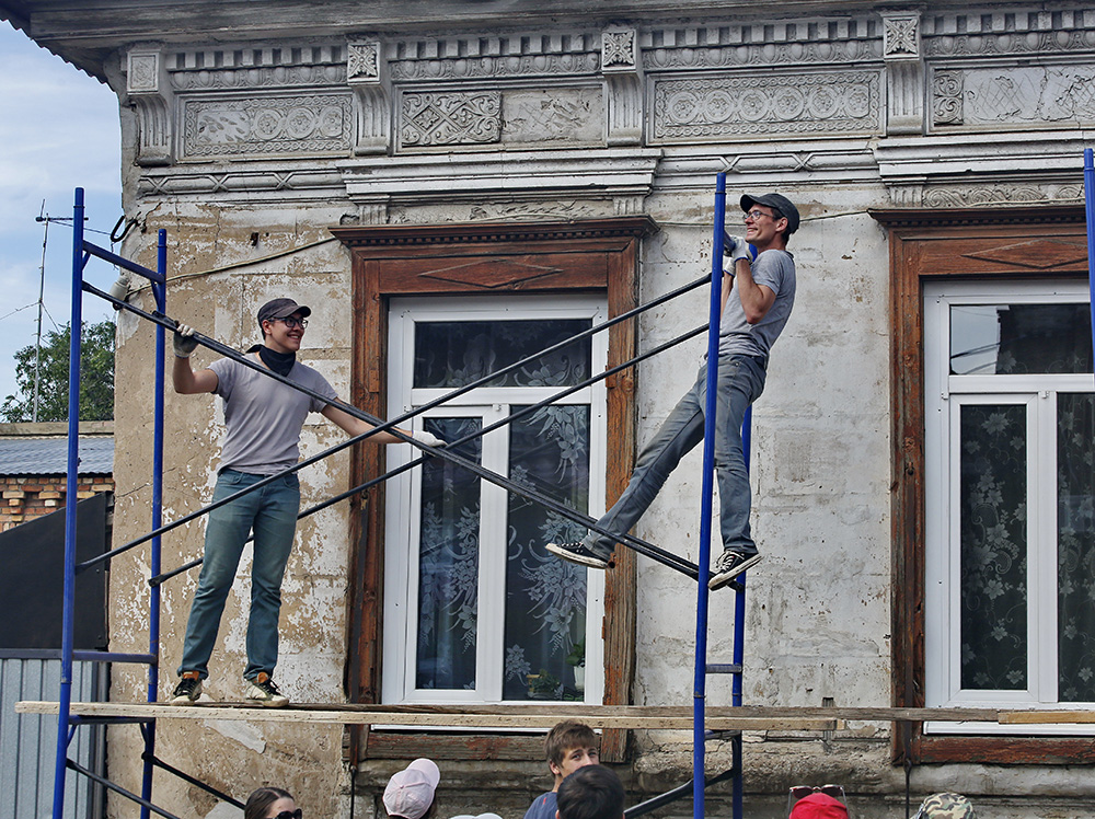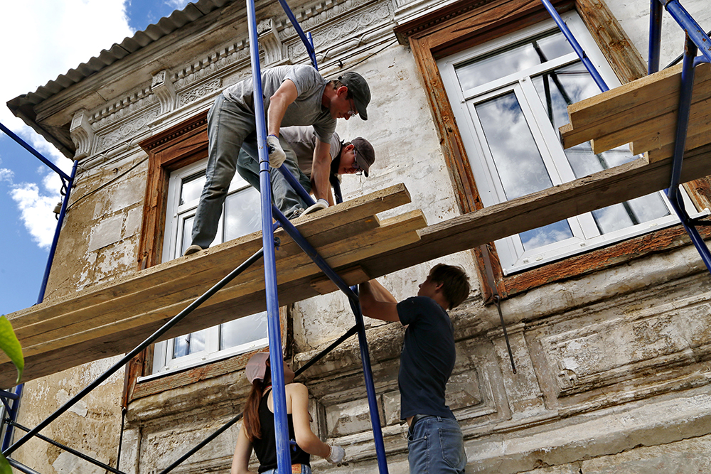 – Хочу сохранить исторический облик родного города, его архитектурное наследие, – объясняет мотивы участия в фестивале студент ОГУ Михаил Диденко, откручивая металлический лист на крыльце дома.