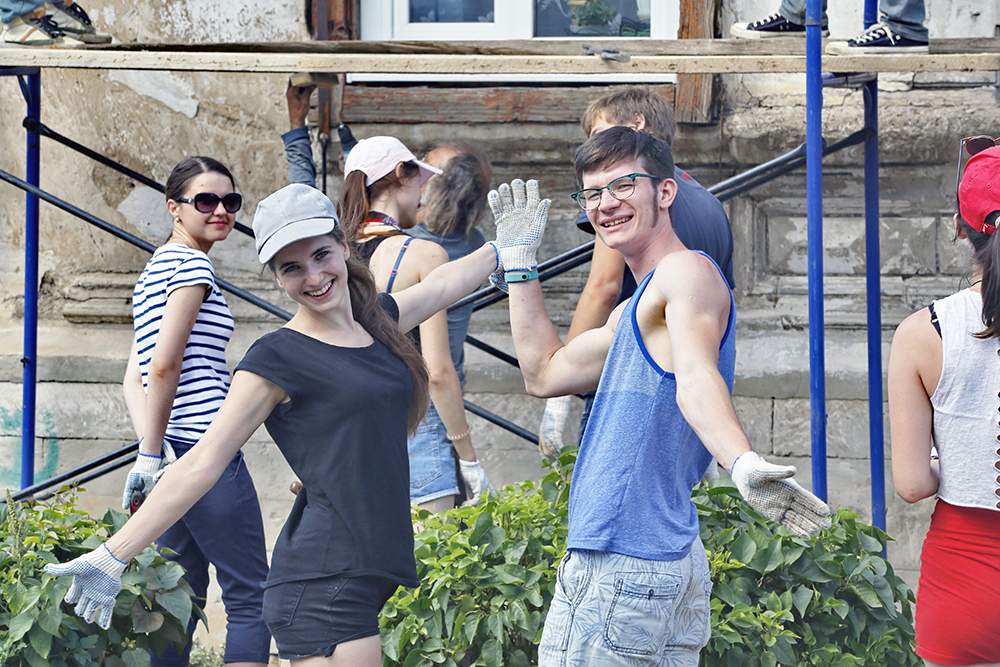 Субботним утром жители Аренды наблюдали необычную картину. Девушки и парни, распределившись цепочкой под окнами старинного особняка на улице Маврицкого, 72 принялись шпателями соскребать со стен старую краску.