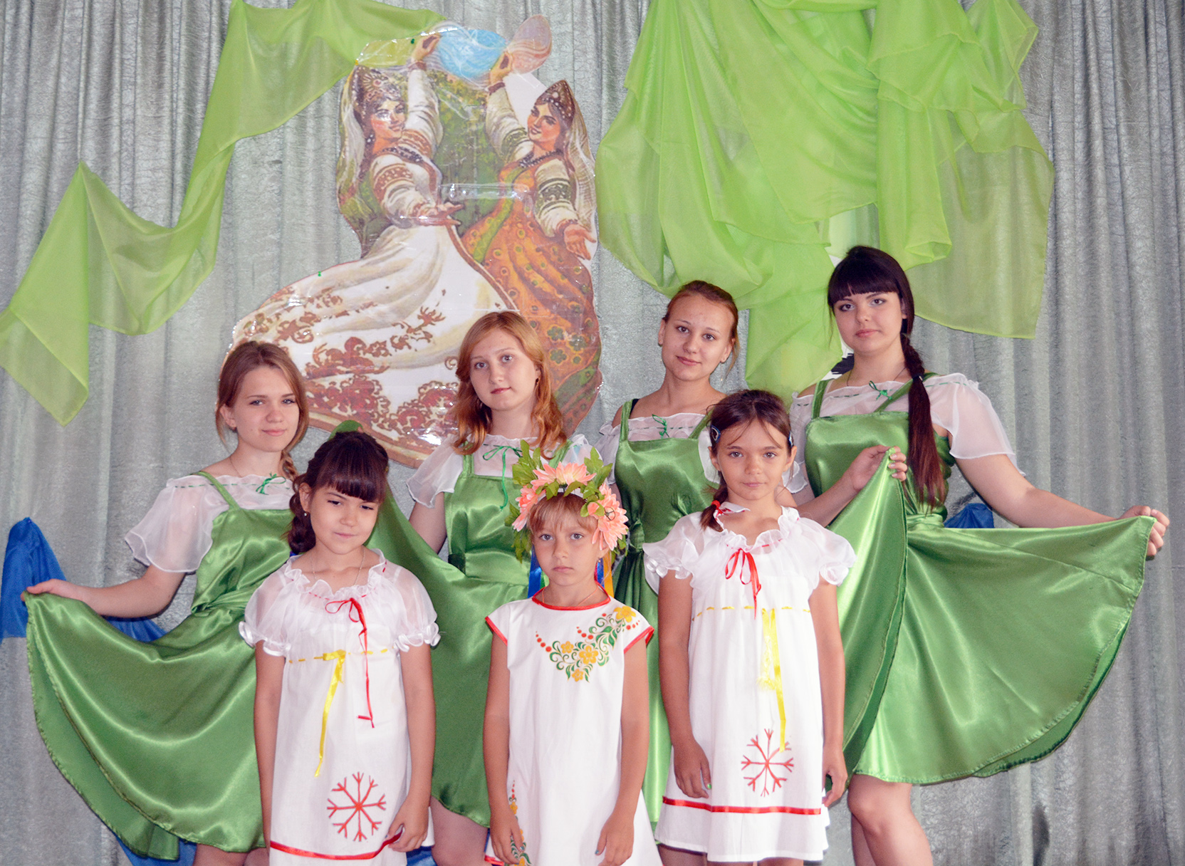Начался фестиваль с красивой танцевальной композицией «Ивушки» в исполнении вокальной группы «Журавушки». На сцене была показана сказка «Сестрица Аленушка и братец Иванушка.