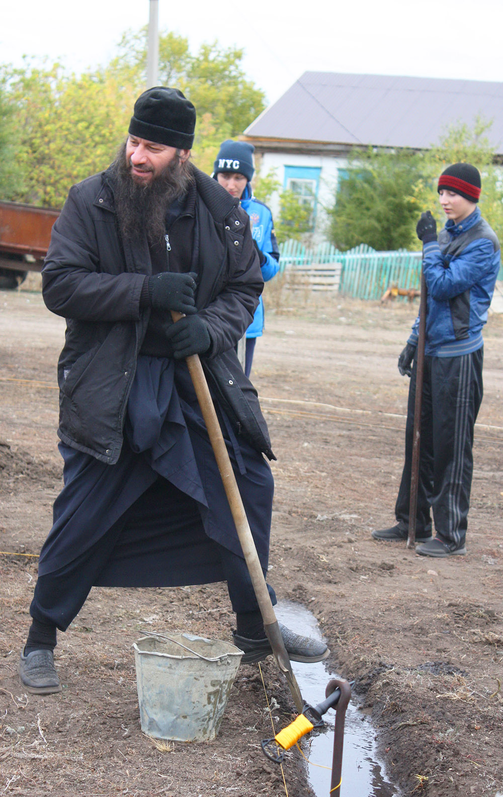 Вместе с прихожанами за работу принялись и епископ со священниками. Кто переоделся в мирское, кто остался в привычном подряснике. Жесткая, каменистая почва поддавалась неохотно. Ворочая ломами и заступами, отцы с улыбками переговаривались: