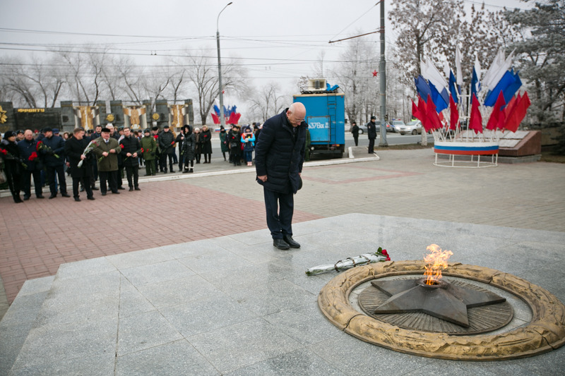 После минуты молчания участники церемонии возложили цветы к Вечному огню.