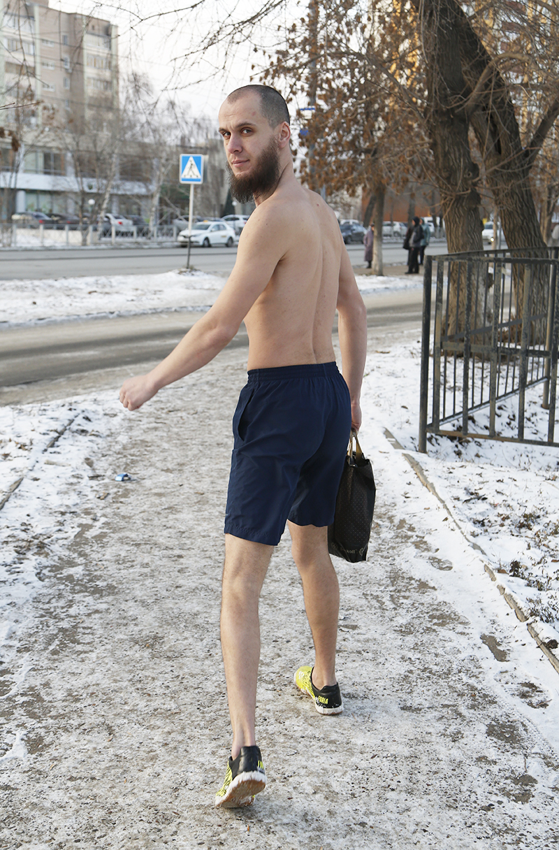 Этот парень шокирует окружающих, когда в мороз ходит по улицам Оренбурга в майке, тренировочных шортах и кроссовках. Кто же он – городской сумасшедший или право имеет?