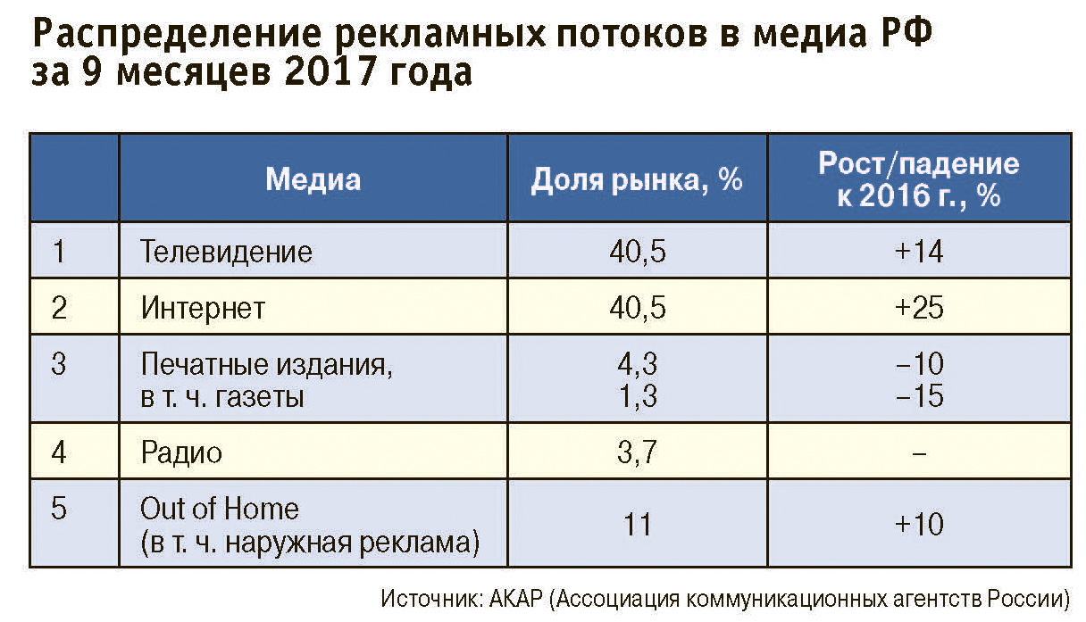 – Для местных газет ситуация самая сложная. Если в целом по стране рекламный рынок в 2017 году вырос на 15 процентов, то у прессы – падение на 10 процентов. А в Оренбуржье доходы от печатной рекламы снизились на 15 – 18 процентов.