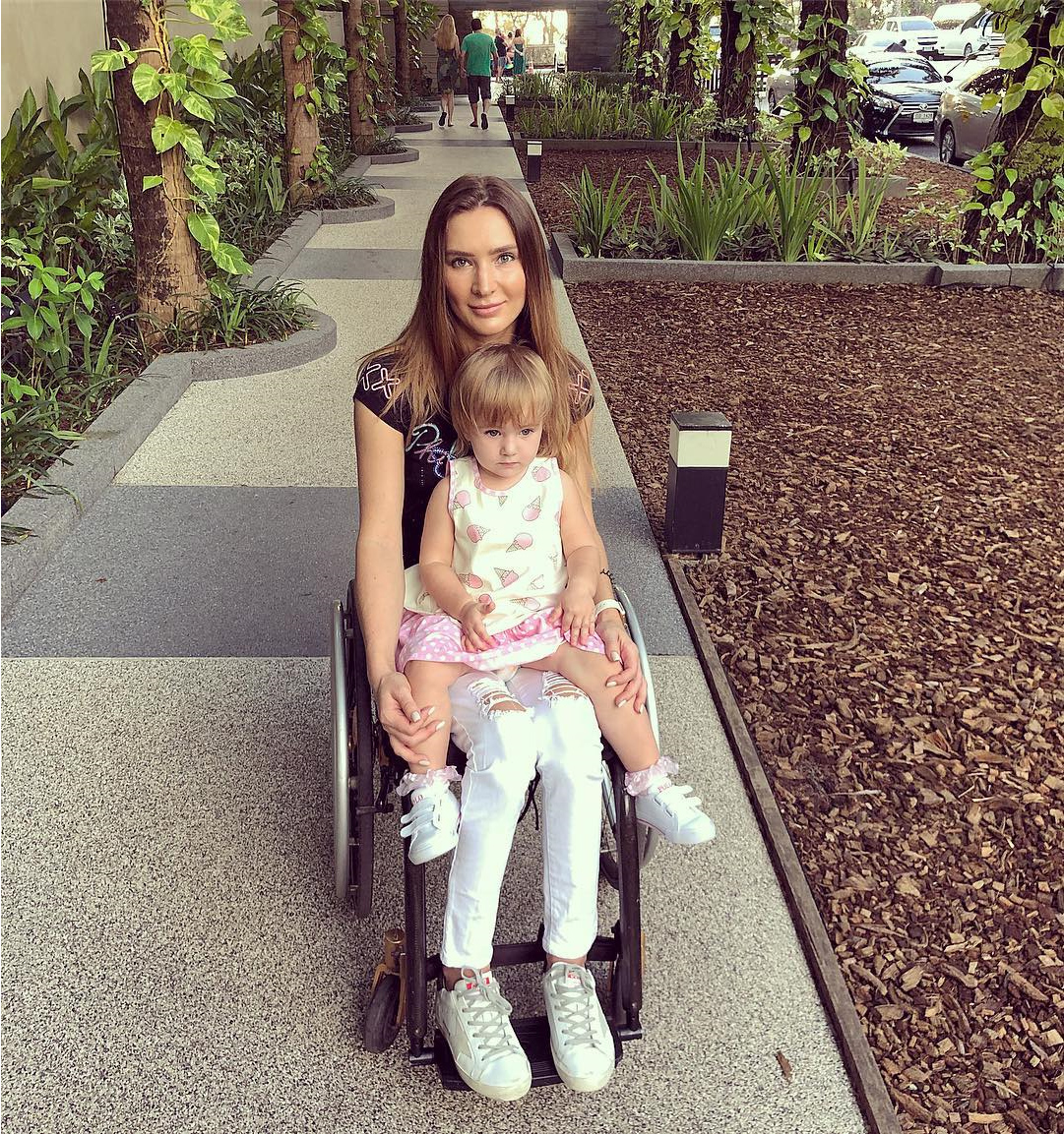 Всю беременность я не ходила, передвигалась на коляске, муж на руках носил. А как Дашенька родилась, заново начала тренировки, лечение.