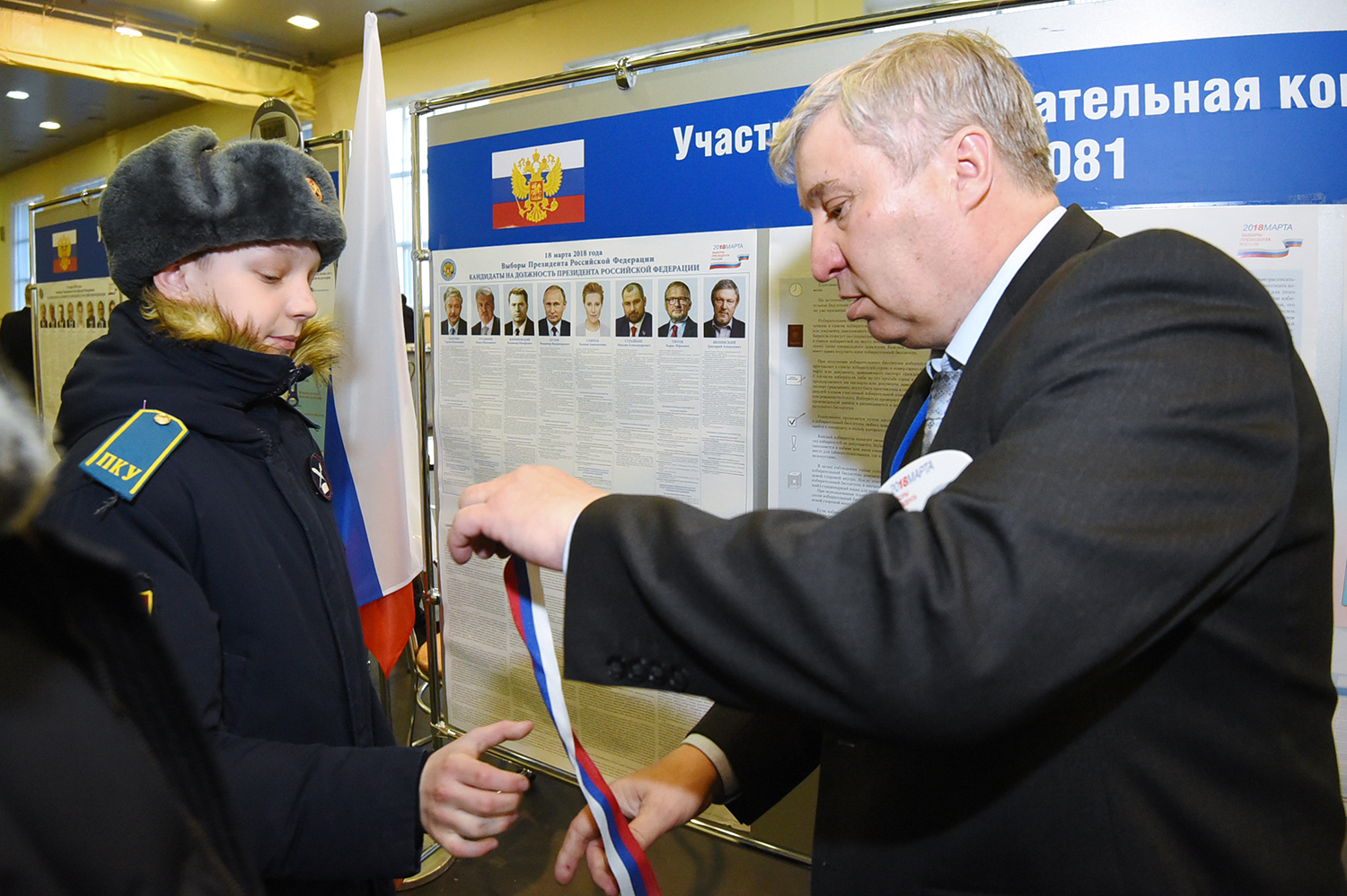 Кадеты в военной форме сурово-внимательно изучали биографии на стендах (бедные политики!), дедок в двух парах очков водил пальцем по фамилиям, девушки без стеснения делали селфи с президентом, а где-то рядом пели.