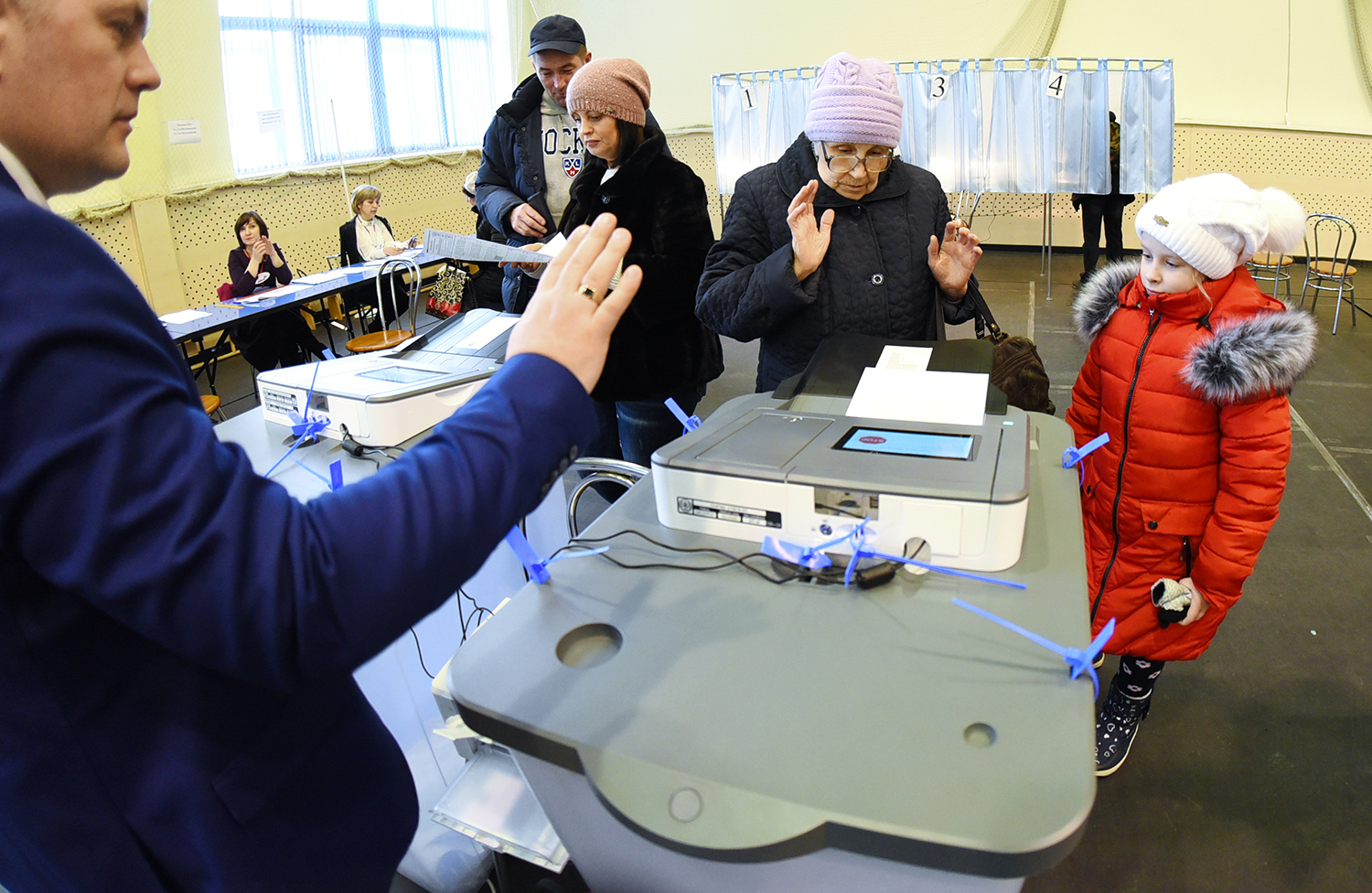 С недоверием посмотрев на «чудо-машину», под улыбки наблюдателей бабушка степенно покинула зал, кандидатам на плакате с предвыборной агитацией разве что пальцем не погрозив: смотрите у меня!