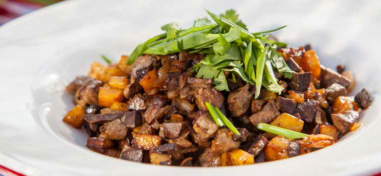 Это традиционное жаркое, ингредиенты которого – печёнка, лёгкие, почки, сердце и лук (без картофеля!).