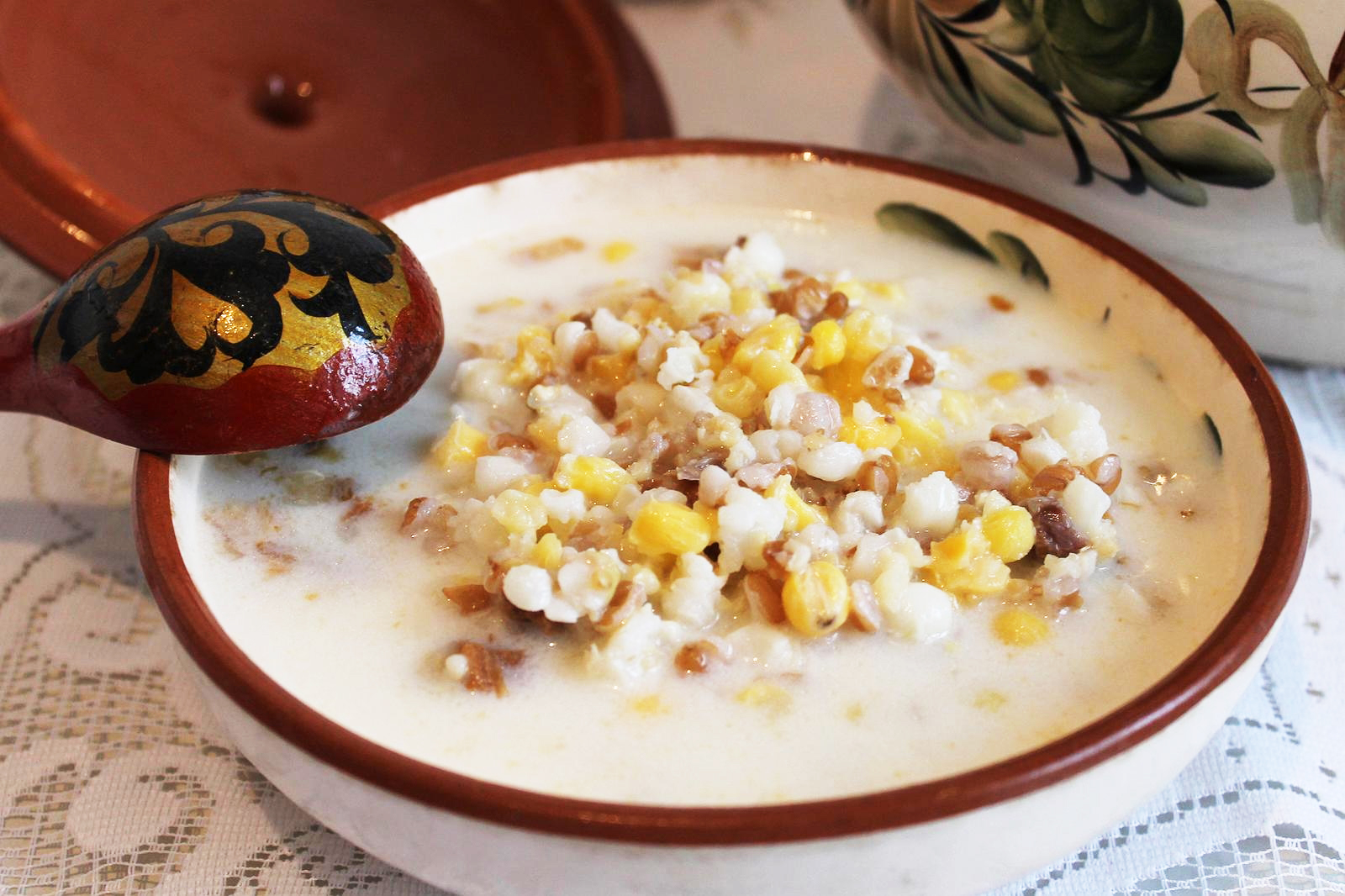 Мясо отваривают как для бульона. Готовое мясо вынимают, нарезают и кладут обратно в бульон. В бульоне отваривают перловку и рис. Если предпочитаете более жидкий вариант, крупы кладёте немного, но предпочтительно готовить густой, наваристый суп. Лапшу кладут, когда рис почти сварится. Бульон с мясом, крупами и лапшой немного остужают и заправляют айраном или кефиром.