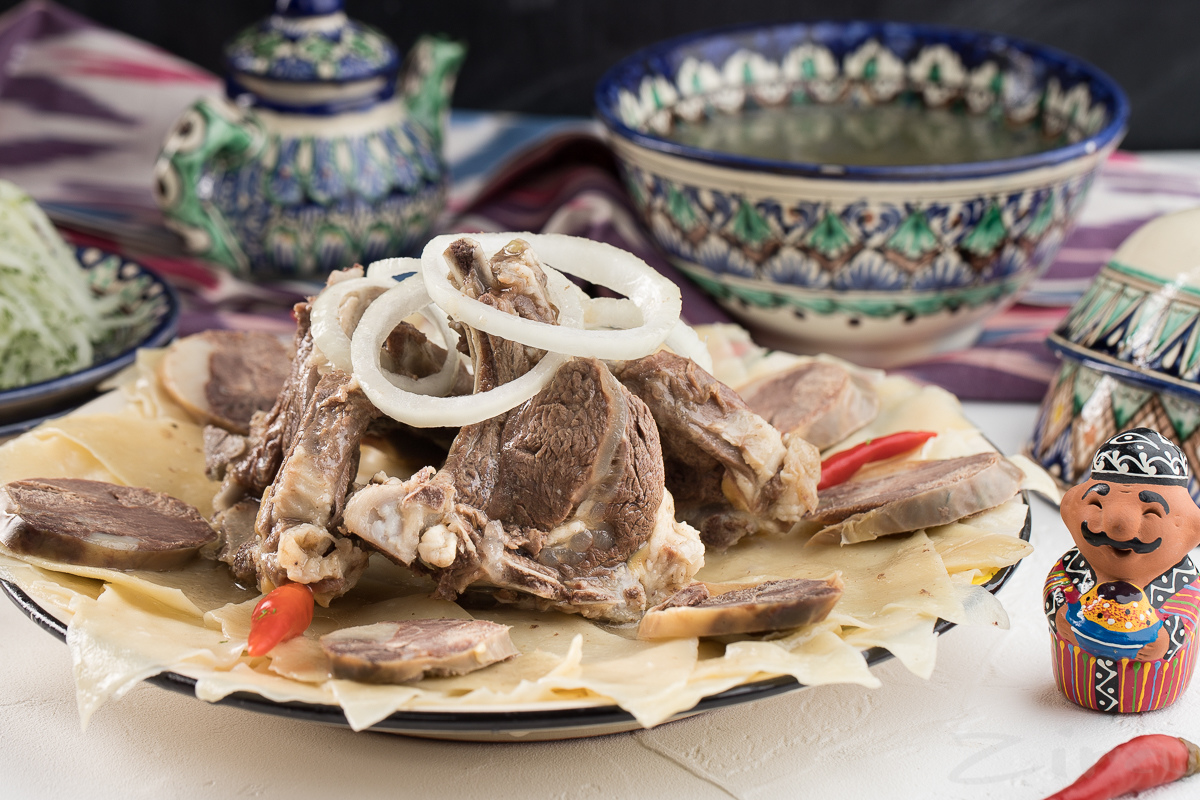 Его готовят из баранины, конины и говядины. Подготовленные и промытые куски мяса опускают в казан с холодной водой и доводят до кипения. Снимают пену и на слабом огне варят до готовности. За полчаса до конца варки добавляют соль по вкусу, можно добавить в бульон очищенный картофель, сварить его до готовности и вместе с мясом переложить в закрытую посуду.