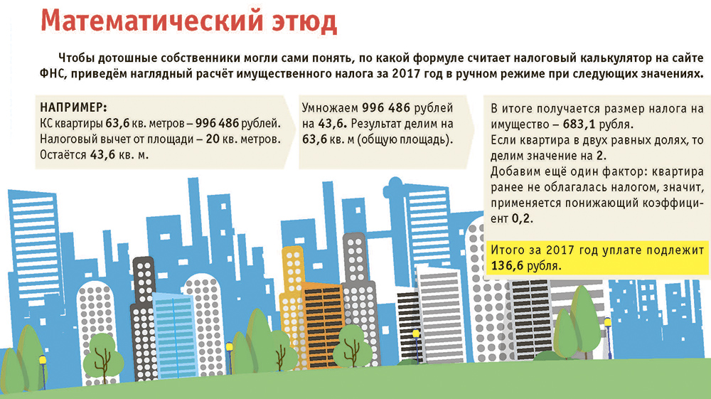 Но принципиальным вопросом для собственников будет не утешительное сравнение с другими объектами, а разница между размером налога на своё недвижимое имущество до 2017 года и теперь. Если человек платил за двушку 200 рублей в год, а сейчас налог вырастет, к примеру, до 300, то смутные сомнения по поводу справедливости начисления наверняка станут терзать придирчивого налогоплательщика.