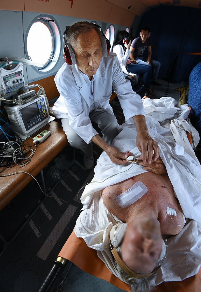 Санавиация, это просто название такое, узкоспециальное, которое нужно трактовать, безусловно, шире: вертолёт, поезд, машина. Почти любым видом транспорта попавших в беду оренбуржцев доставляют домой, где, как известно, и стены помогают. Салехард, Горячий Ключ (Крым), Пенза, Москва, Челябинск, Самара, Башкирия – почти со всей страны забирают «наших» врачи санавиации. Бригада реаниматологов, вертолёт или автомобиль, бесчисленные часы в пути. И если бы просто ехать. Очень часто приходится возвращать пациента к жизни, это уже не говоря о постоянном мониторинге пульса, давления, капельницах…