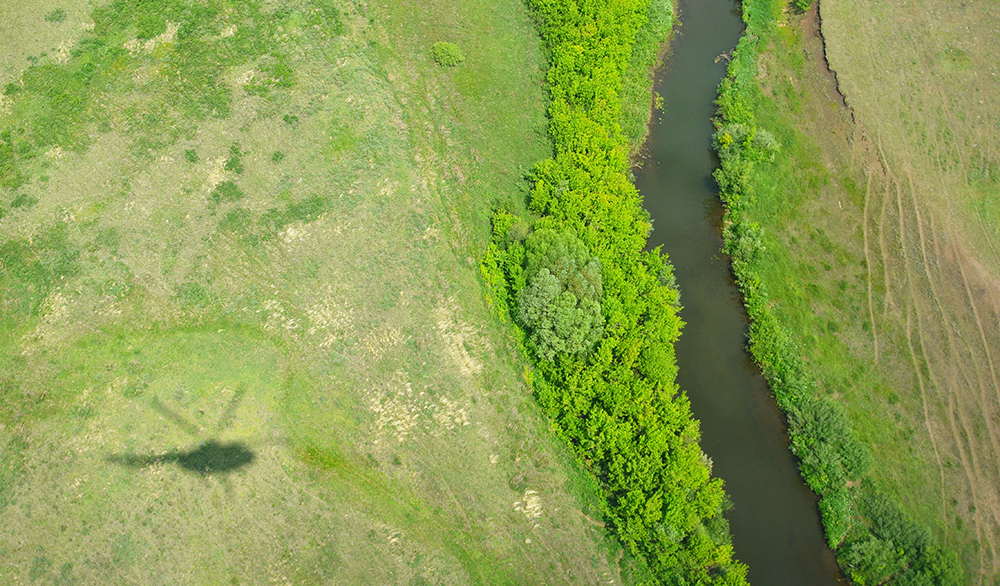 Курманаевка. Она, по нашим полётным меркам, совсем рядом. Садимся в месте, где стоят ржавые футбольные ворота. Причём одни.