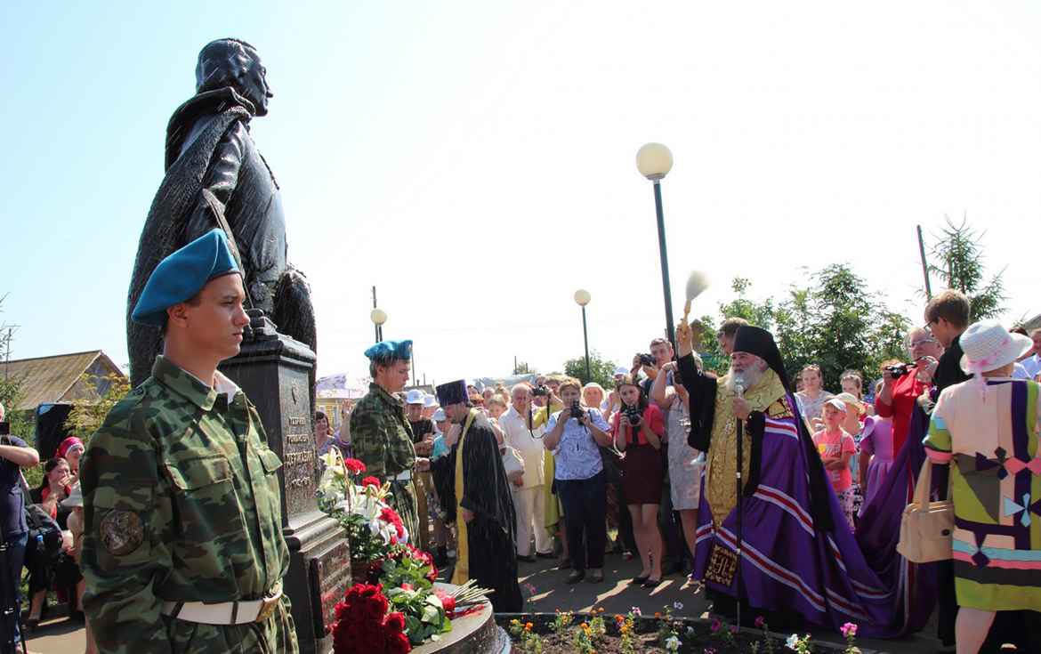 Далее в присутствии оренбуржцев, гостей из Санкт-Петербурга, Татарстана, Новгородской и Самарской областей в сельском парке был торжественно открыт памятник Державину. Скульптура была создана на народные средства по инициативе администрации Бузулукского района.