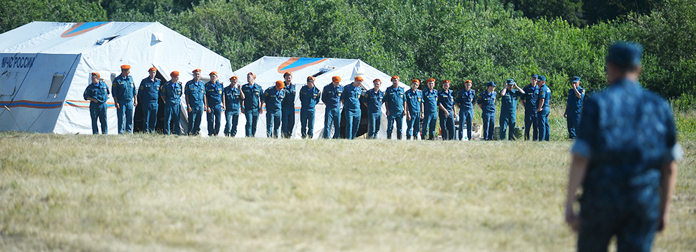 Отрабатывали свои навыки и сотрудники МЧС России по Оренбургской области. Убегая от преследования, условные террористы врезались на автомобиле в стену заброшенной фермы. Двери заклинило. Спасатели за 20 минут должны спилить с автомобиля крышу и эвакуировать пострадавших. Хоть террористы были условными, но в салоне автомобиля сидел очень даже живой сотрудник. Спасатели срезали металлические стойки – не ранили, не обожгли потерпевшего, эвакуировали по всем правилам. Недалеко от места аварии отрабатывалось тушение пожара и разгерметизация контейнера с химоружием. Наблюдающим со стороны предстала картина апокалипсиса: развалины старой фермы заволокло густым дымом, в дверной проём зашли двое в оранжевых костюмах химзащиты. Двое сотрудников, огромные, почти бесформенные, растворились в дыму.