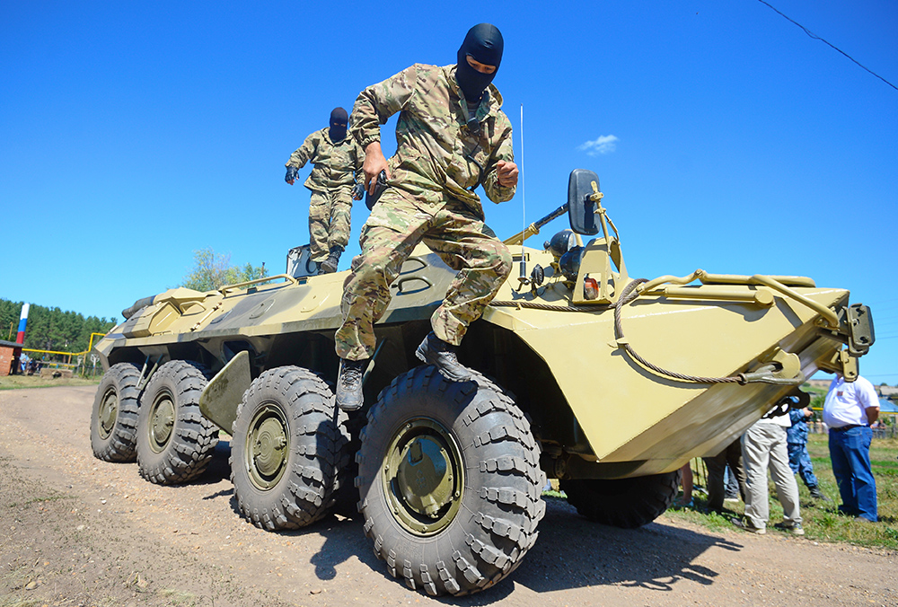 Вот на здании сельской библиотеки строится новая крыша. А вот рядом стоит заброшенная кирпичная двухэтажка, в которой раздаётся несколько взрывов. На неё движется БТР, в пустые окна летят пули, в дверные проёмы бросаются бойцы спецназа. По сценарию учений, именно здесь оставшиеся в живых диверсанты укрылись от преследования. Они захватили заложников. И пропадают все другие звуки. Только грохот выстрелов и взрывов. Пейзажи мирной пасторали меркнут, подавленные впечатлением от учебного боя. Ощущение как от грозы – прекрасно, но жутко. По оценкам руководителей, спецоперация прошла успешно – «террористы» ликвидированы, заложники спасены, никто из личного состава не пострадал.