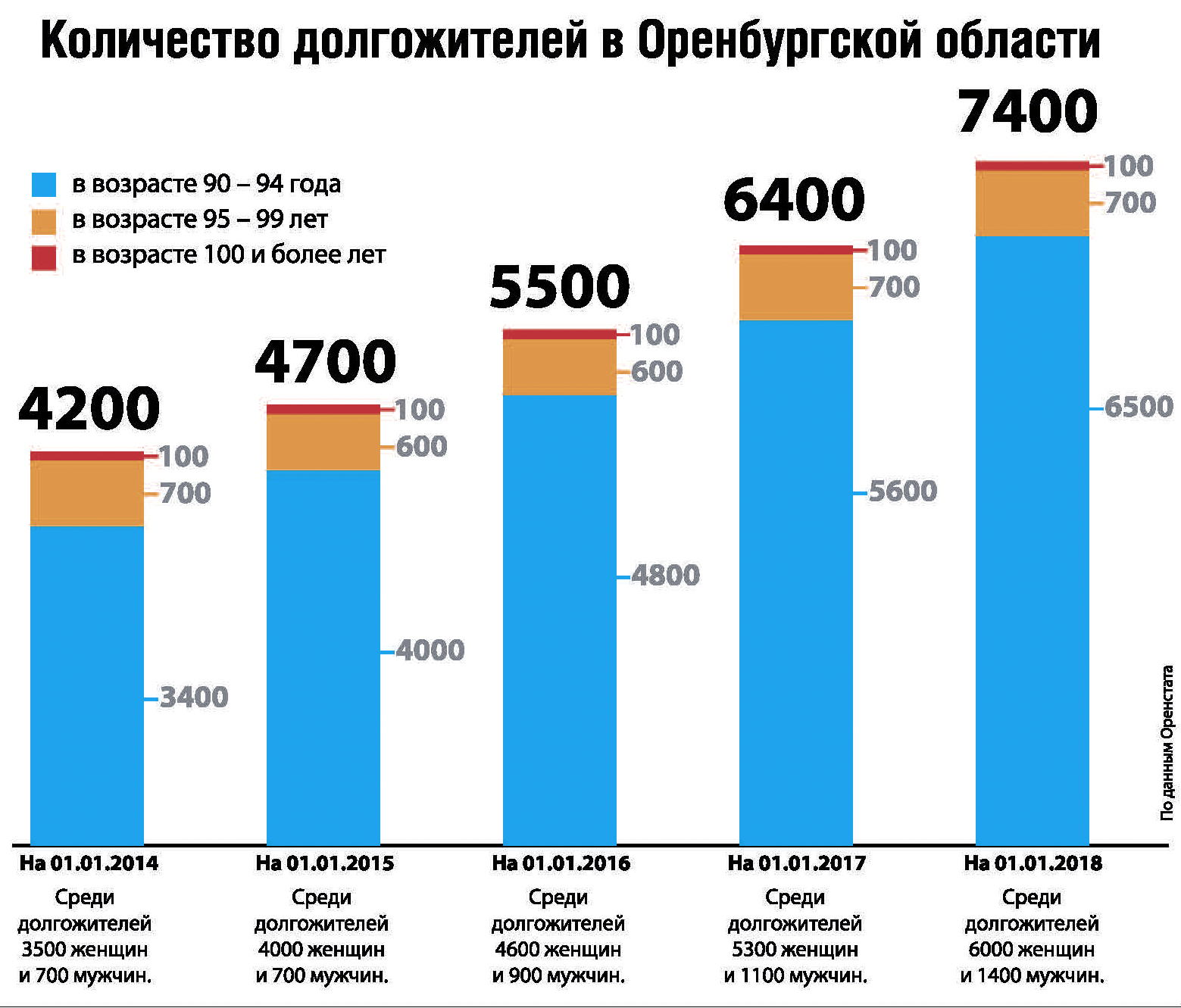 В Оренбуржье долгожителей становится больше. Если в 2014-м их было 4200 человек, то на начало 2018-го – 7400.