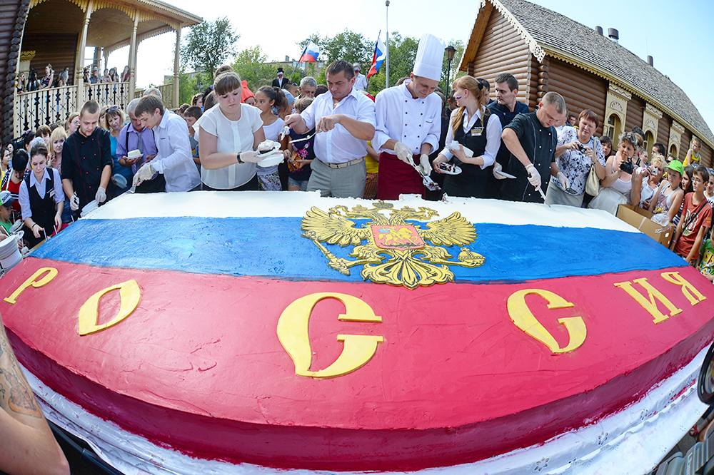 Девчонок и мальчишек из детских домов, которых накормили гигантским «государственным»… тортом.