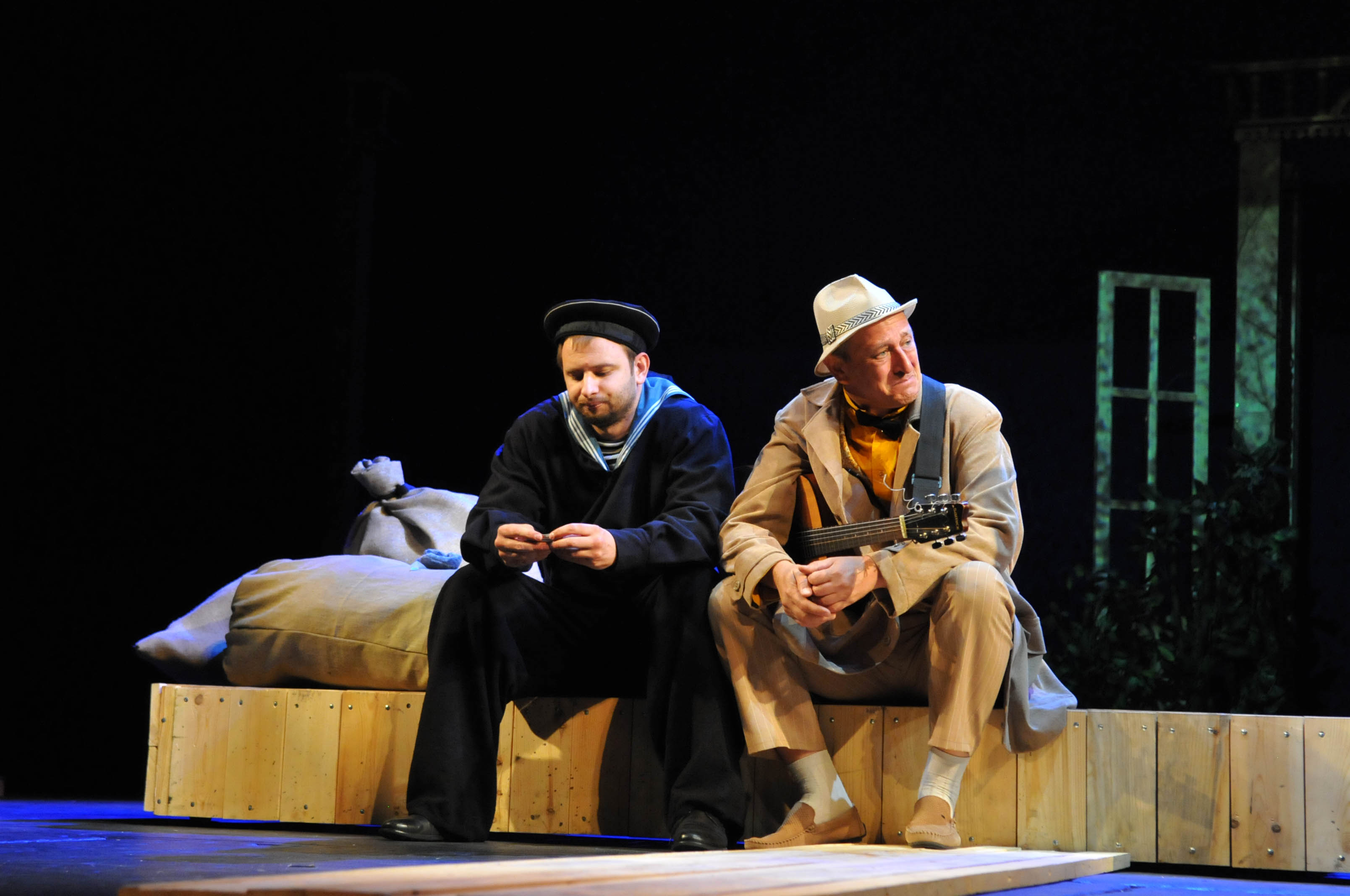 Что показалось некоторым диссонансом в спектакле – музыкальные народные мотивы, уходы героев в стиле кинофильма «Любовь и голуби». Только герои наши совсем другого поля ягода, играют классические вещи на пианино и исполняют романсы под гитару. Впрочем, эти мотивы с середины пьесы как-будто сами собой исчезают.