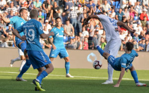 «Зенит» одержал победу над «Оренбургом» в матче 7-го тура чемпионата России. Встреча прошла в Оренбурге на стадионе «Газовик» и завершилась со счётом 2:1 в пользу гостей. На 14-й минуте после подачи с углового с правого фланга в исполнении Леандро Паредеса Александр Ерохин нанёс удар головой и мяч рикошетом от рук вратаря залетел в ворота....