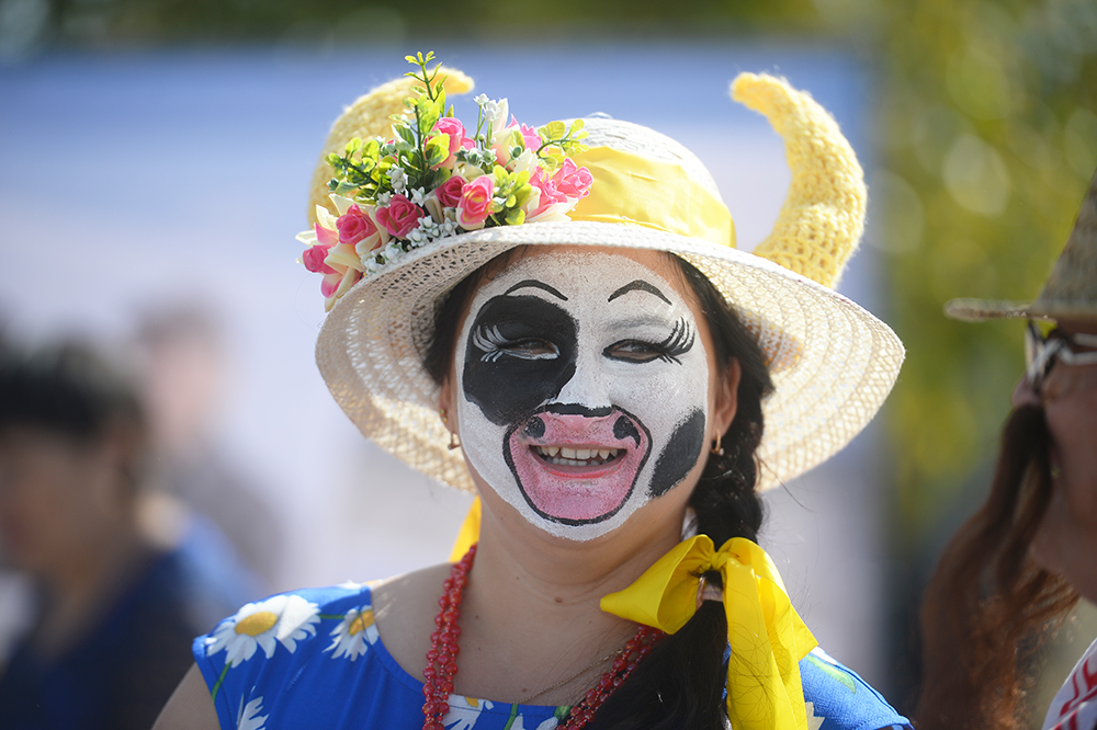 Слева стояла палатка «молочного» салона красоты. При входе сидела длинноногая дама с пышной причёской, украшенной рогами. Это же украшение было на головах детей, девушек, на автомобилях, стогах сена, воздушных шариках. Почти все вокруг были коровами.