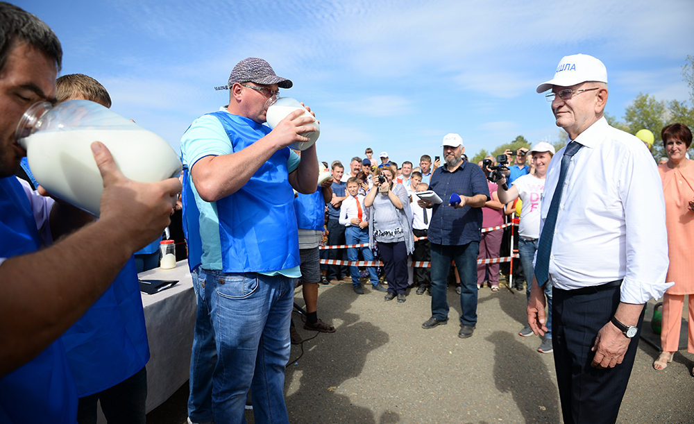 – В первую очередь хочу поблагодарить людей – тружеников этой земли, – начал своё выступление на сцене во время праздника губернатор Юрий Берг. – Спасибо вам огромное за ваш нелёгкий, но такой важный труд. В год Оренбургская область производит 700 тысяч тонн молока, и Ташлинский район – лидер в производстве.