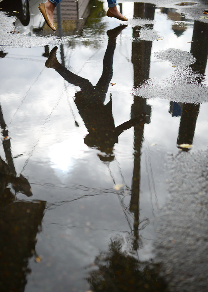 Наконец-то появился этот фантастический запах прелой сырой листвы, без которой и осень-то осенью не назовёшь. Появились лужи, поймавшие в себя редкое солнце, сквозь пелену облаков. И молодёжь, порхающая через всё это так естественно, глядя друг на друга и в мобильные телефоны.