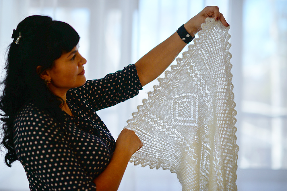 Если реализовывать в Саракташе на базаре, выручка небольшая. Я знаю цену своему труду, поэтому продаю через знакомых. Стараюсь оправдать затраты. У меня корова, огород, поэтому быстро платок не свяжу. На создание пухового изделия среднего размера зимой, когда дни посвободнее, уходит три-четыре недели.