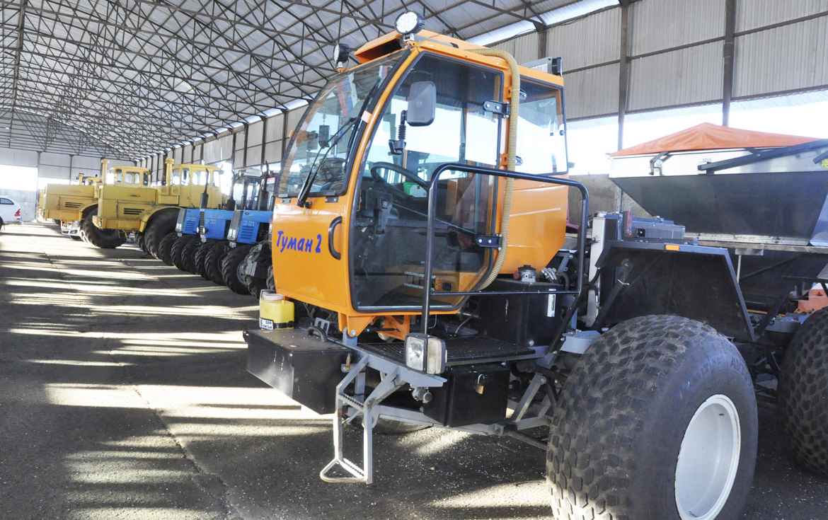 Тракторная техника и автомобили собраны под навесом пустующего зернохранилища. Старые машины выглядят ухоженно. Кабины чистые, на полу ни единого потёка масла. Есть и недавние приобретения – два новеньких «Беларуса», мощный «Кировец» последнего поколения, распылитель-опрыскиватель «Туман-2».