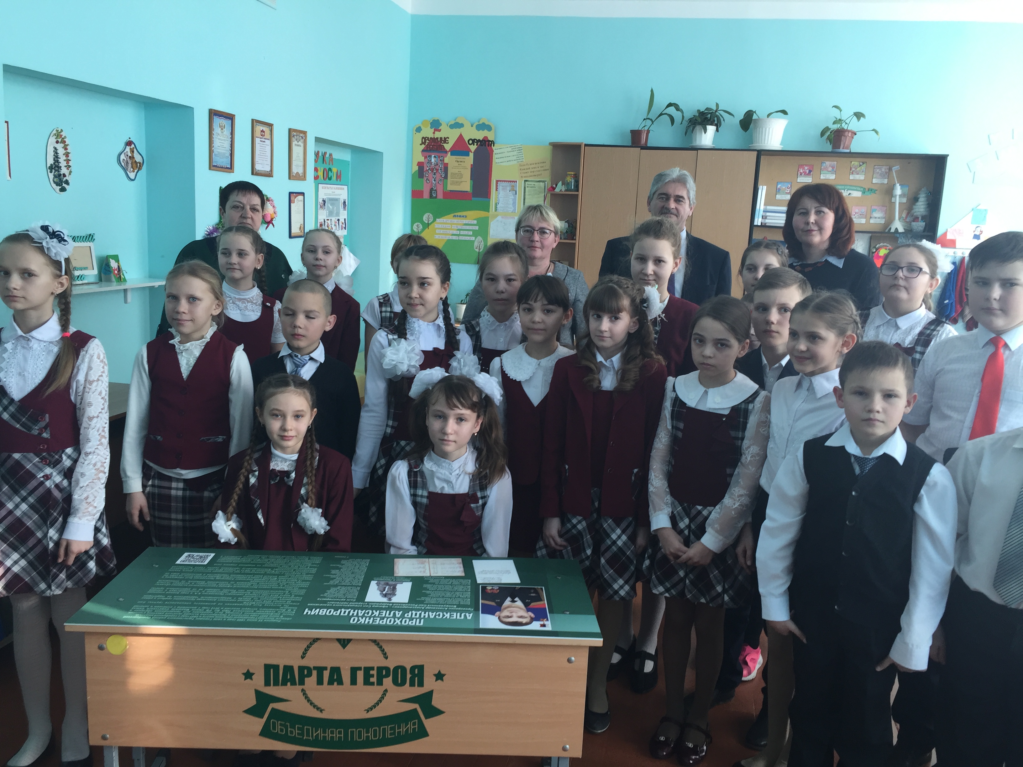 На пластиковых пластинах, покрывающих парты в четырёх кабинетах начального звена школы, изображены портреты и биографии Героя Советского союза Александра Матросова, Героя Советского союза Александра Родимцева, Героя России Александра Прохоренко и кавалера ордена Красной Звезды Александра Гонышева.