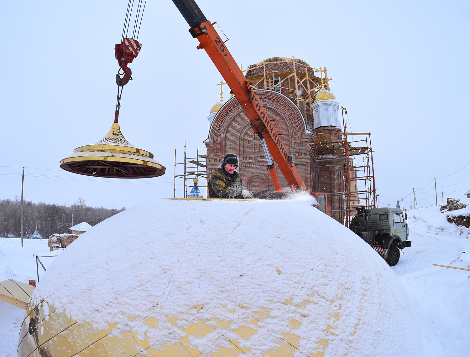 На минувшей неделе в день православного праздника Сретение установили купола на храм в честь Казанской иконы Богоматери. Крестным ходом и молебном отметили это событие местные жители, собравшиеся на историческое событие.