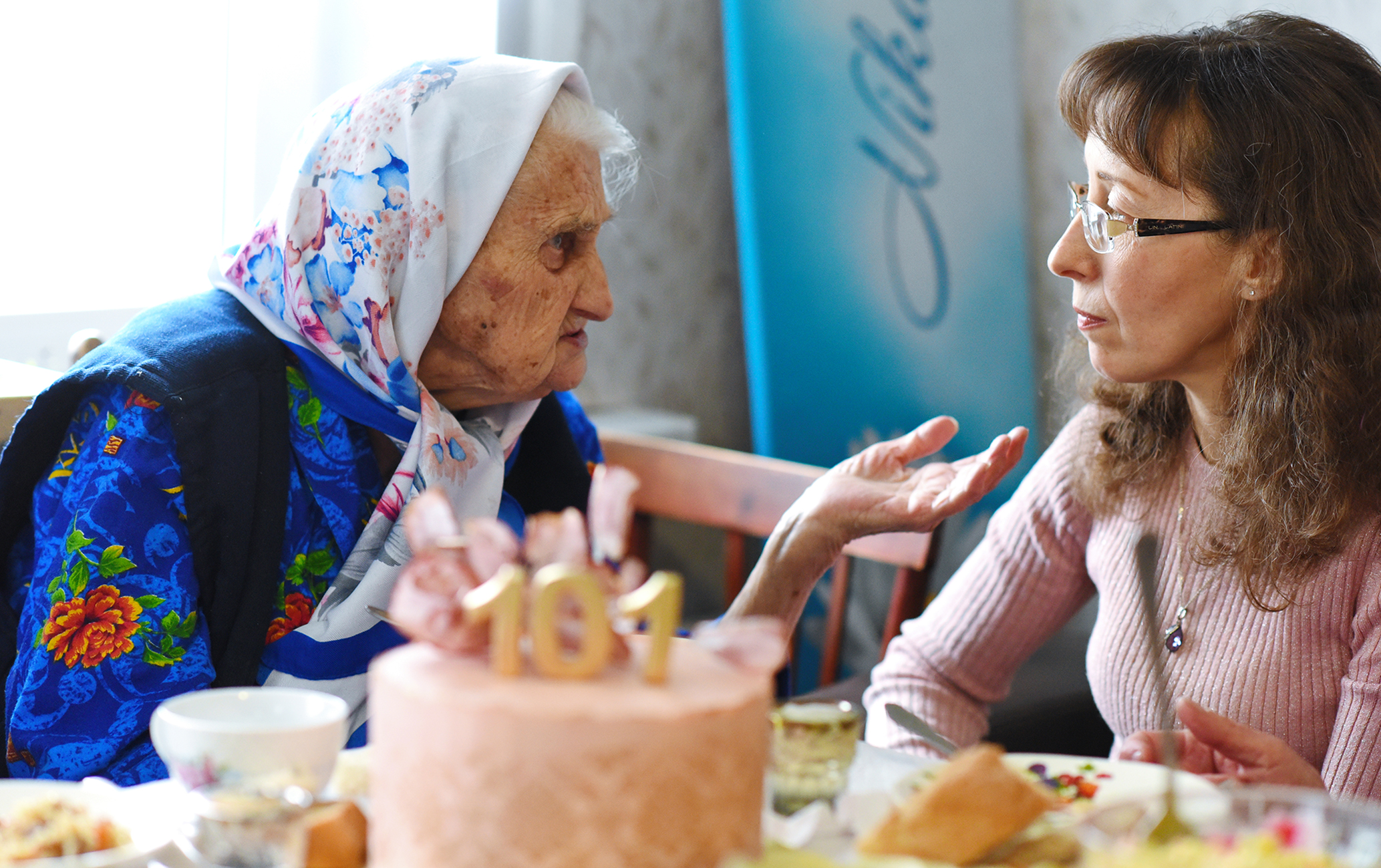 Рассказала о своей семье, спела для нас русские и украинские песни. И вот теперь мы в гостях у Веры Михайловны по случаю первого прожитого года второй сотни лет.