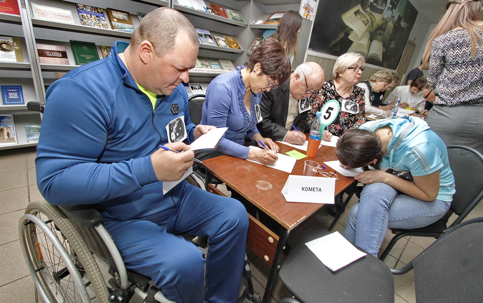 За девятью столами в Оренбургской центральной городской библиотеке имени Некрасова разместились группы знатоков в разноцветных футболках – «Апельсины», «Непоседы», «Комета», «Горячие сердца»… У каждой есть свой амбициозный девиз.