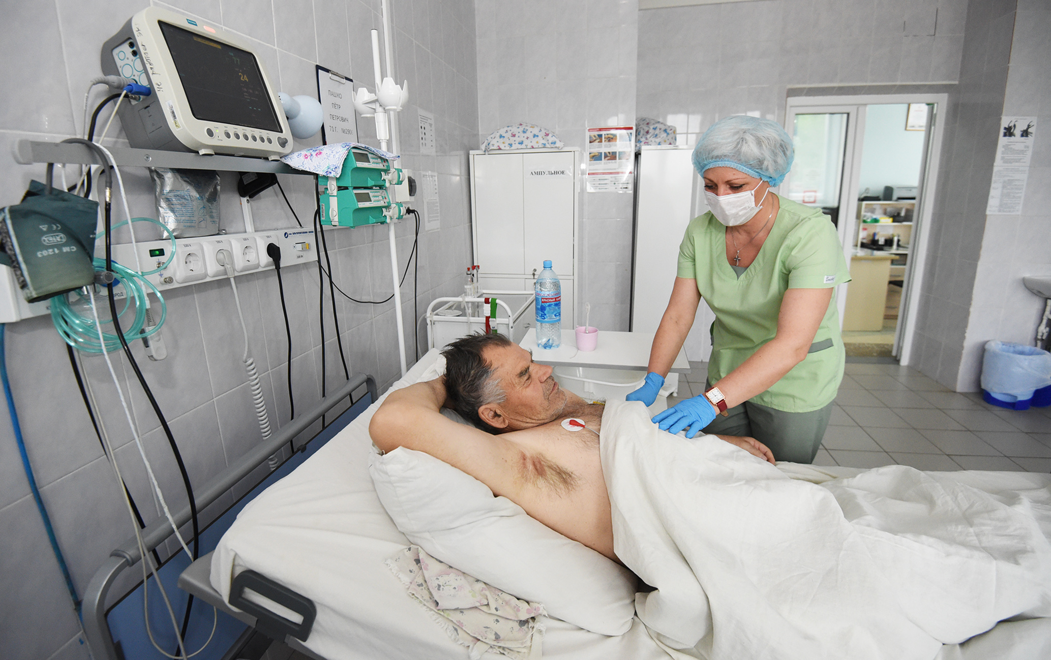Одна из больных призналась, что её раздражают бортики на кровати. Из-за них она не мо жет сесть и свесить ноги вниз. Прямо во время визита деле гации Минздрава пациентку посадили. Оказалось, что она находится в госпитале уже три дня и з а это время у стала постоянно лежать. Теперь, видимо, здесь будут обращать внимание и на это.