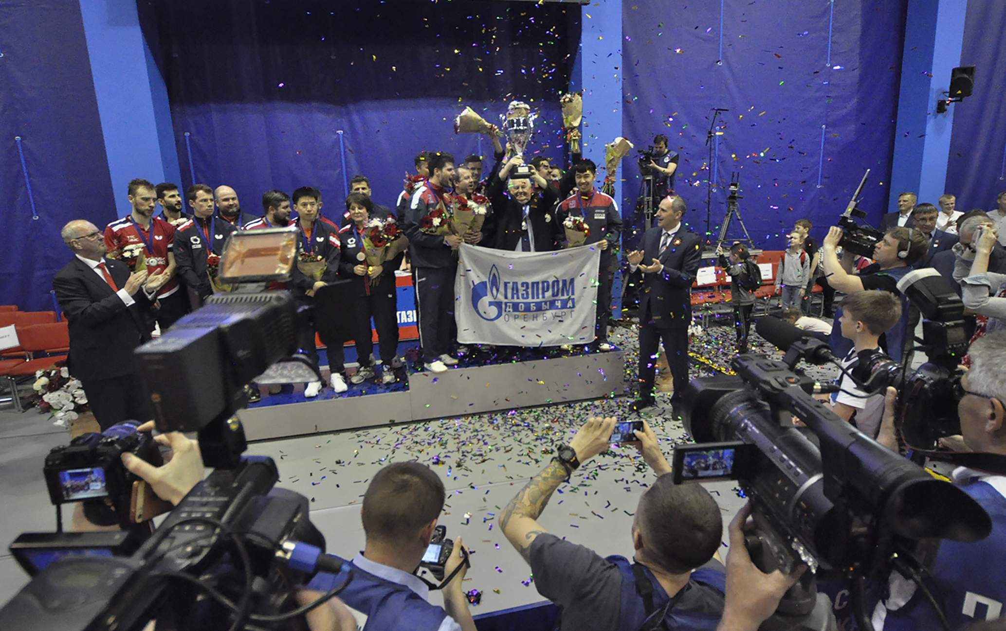 Кубок Лиги европейских чемпионов и золотые медали победителям вручили президент Европейского Союза настольного тенниса (ETTU) Рональд Крамер и врио губернатора Оренбургской области Денис Паслер.