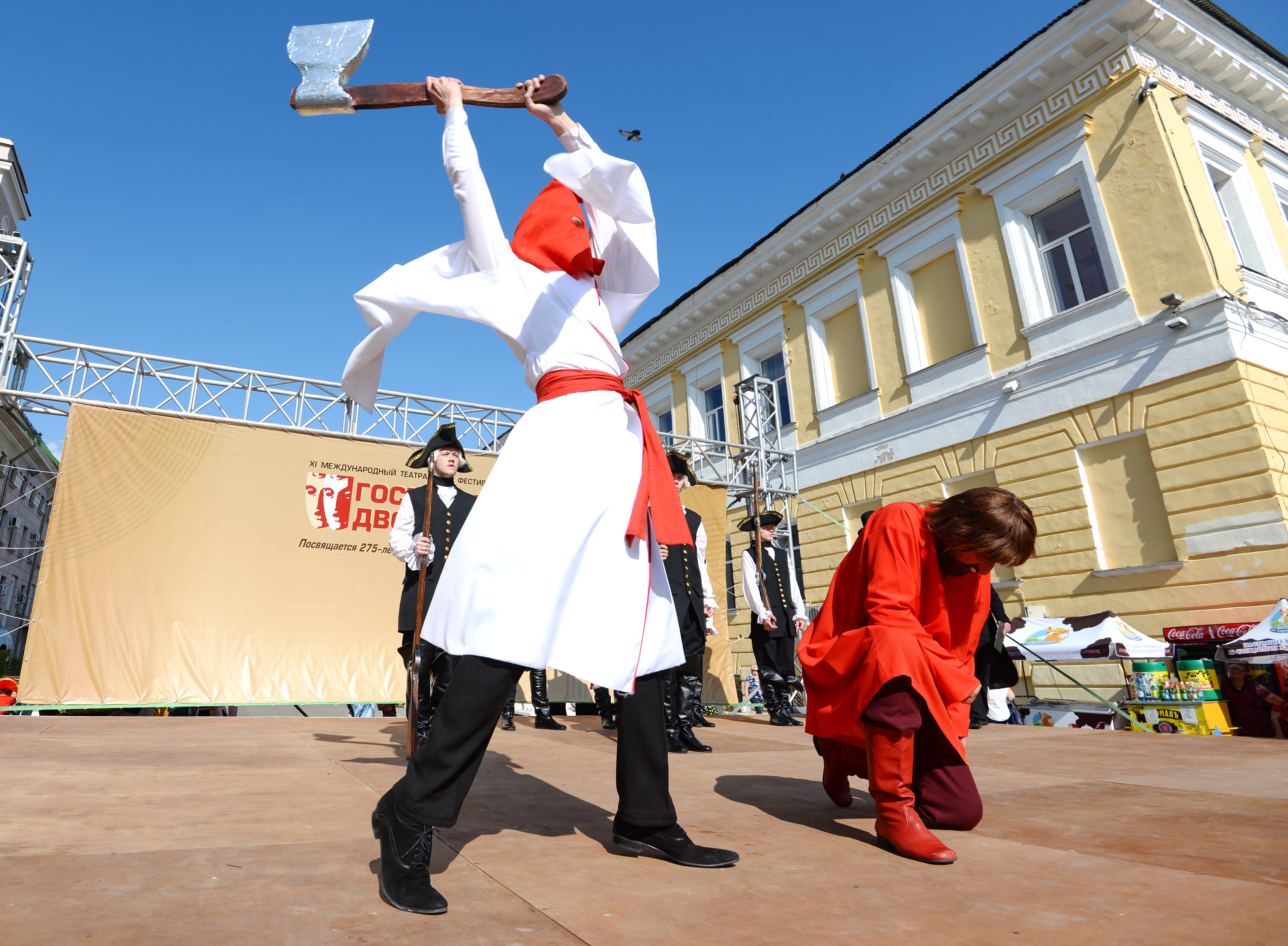 В день открытия фестиваля перед спектаклем возле драмтеатра на уличных подмостках актёры реконструировали сцену последних минут перед казнью Емельяна Пугачёва, позволив себе интерактивную импровизацию с историческими фактами: зрителей спросили, стоит ли лишать жизни бунтовщика и самозванца? Только пару голосов «казнить» были слышны в общем хоре гуманистов, решивших, что по прошествии 250 лет можно и помиловать героя, с которым в мировой литературе тесно связано имя нашего края.