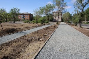 В Новотроицке идёт активная реконструкция сквера за Молодежным центром