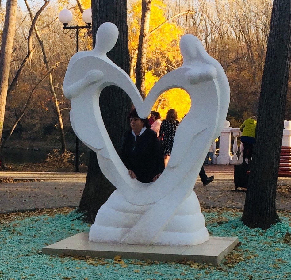 – Задание для меня оказалось сложным, ведь нужно было не банальную скульптуру подготовить, а предложить орчанам что-то новое и в то же время показать вечные ценности, – говорит Александр Ефимович. – И я задумал композицию, в которой основное внимание уделено пластике фигур, их единству. Для меня важно было, чтобы композиция воспринималась как одно целое. За основу взял сердце. Сделал его воздушным, было желание не утяжелять объект. Сердце образуют жених и невеста, взявшись за руки. Одной рукой молодой человек берётся за своё сердце, готовый отдать его невесте. Девушка же свободную руку скромно опустила вниз, держит её за фатой. У скульптурной пары нет лиц. Это задумано для того, чтобы влюблённые смогли представить на месте этих навечно соединённых молодых людей себя.