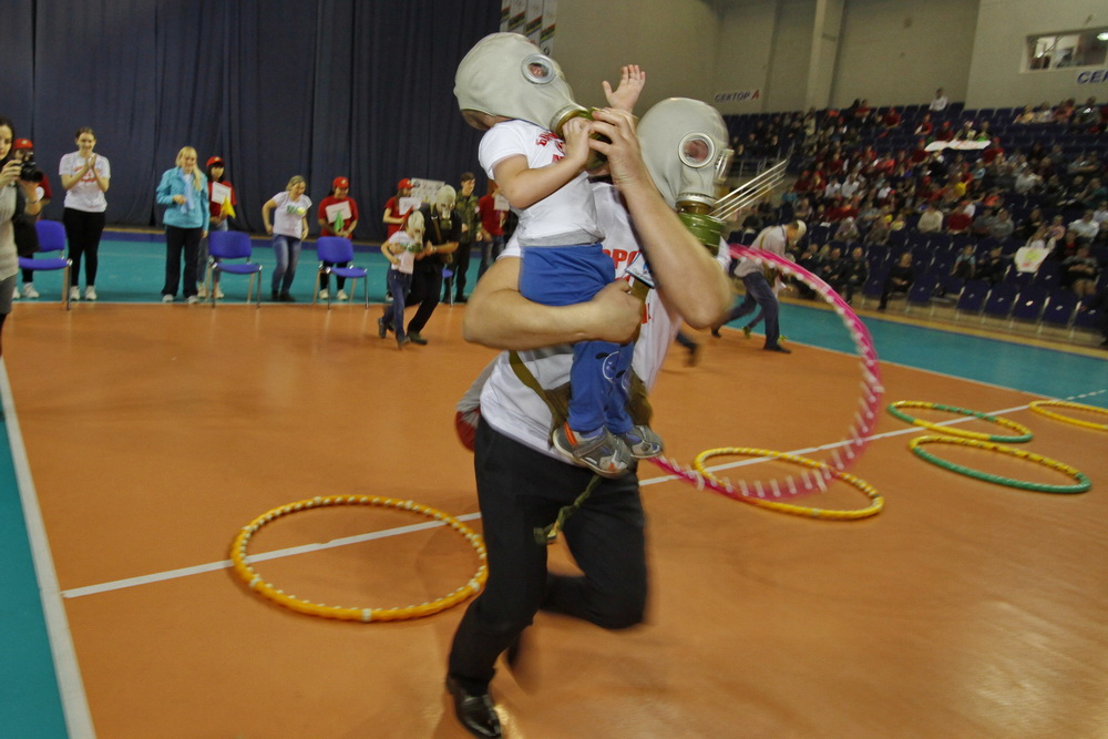 После открытия прошли тематические конкурсы для многодетных семей. Главной их целью была отработка практических навыков действия в экстремальных ситуациях. Дети и взрослые «спасали» друг друга в условных пожарах, собирали дымовые извещатели, на скорость надевали противогазы, а главы семейств – полное обмундирование пожарного.