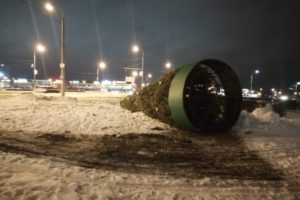 В Оренбурге сильным ветром повалило елку