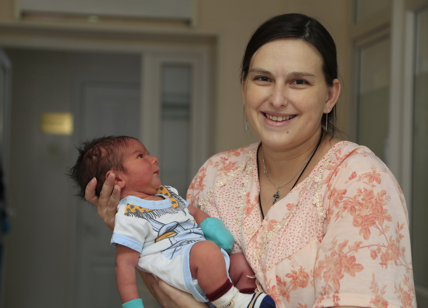 С разрешения заведующего родильным отделением Юрия Феоктистова мы зашли в палату к трём молодым матерям. В их числе Татьяна Жилина, мать первого в 2020 году ребёнка, появившегося в старейшем роддоме Оренбурга. Она светилась от радости, глядя на сынишку. Дома их дожидались отец и старший брат Данил. Разница у мальчиков – пять лет.