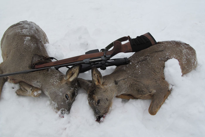 Во время осмотра автомобиля и установленного места отстрела были обнаружены две туши косули и охотничье гладкоствольное ружье. Автомобиль помещён на штрафную стоянку.