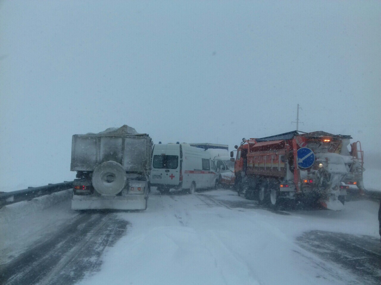 Сегодня днём произошло массовое ДТП на 246 км автодороги Оренбург-Орск-Шильда возле села Халилово.
