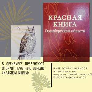 14 февраля в 11 часов в Оренбургской областной универсальной научной библиотеке им. Крупской пройдёт презентация второй печатной версии «Красной книги Оренбургской области».