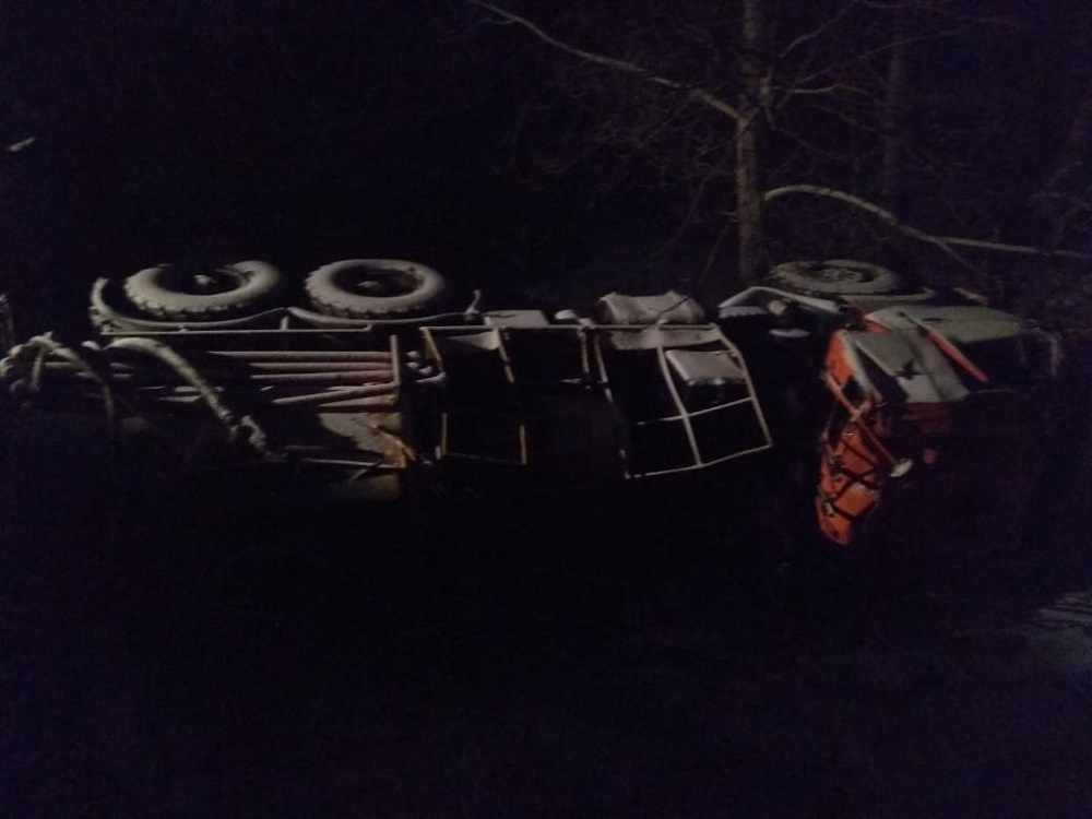 Этой ночью на территории Тоцкого района в районе поселка Молодежный столкнулись два большегруза. От удара один из них перевернулся в кювет.