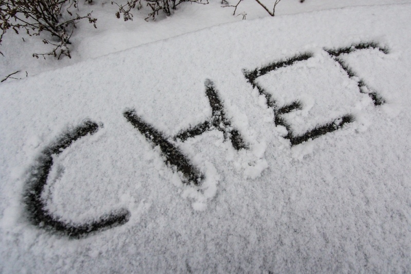 Снег шёл около суток начался в воскресение и продолжал идти весь день в понедельник.