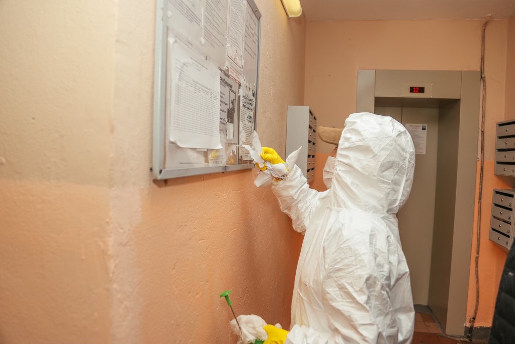 Коммунальщикам рекомендовано проветривать подъезды, протирать все поверхности (стены, подоконники, двери) и обрабатывать их специaльными моющими средствами.